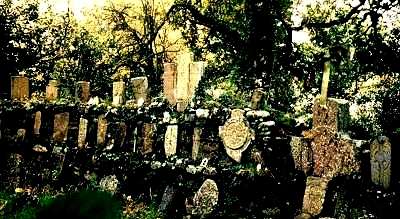Cloontuskert, county Roscommon One in county Roscommon has a combination of motifs: the 'cross-crossy' and the sacred Jewish menora.