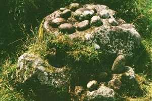 Possibly enlarged from already-existing solution-pits caused by rain, they are, of course, reminiscent of the cup-marked stones which occur all over Atlantic Europe, and their significance (if not their precise use) must date from Neolithic times.