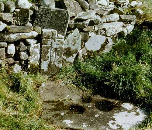 Templebryan North, county Cork, on a very dull day and others look anything but Christian. Feaghna, county Kerry: multiple bullaun and phallic pebble-and-socket In the graveyard at Killadeas in county Fermanagh are a number of curious stones, including a relief carving of an ecclesiastic ( The Bishop's Stone ), a broken phallic pillar, a perforated stone, and a multiple-bullaun (or slab with very large cup-marks) set up on its edge and Christianised on the other side with a cross in relief.