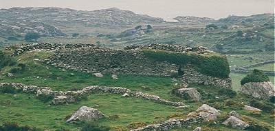 ~ Between Dunbeg promontory fort and Slea Head are many stone forts containing circular stone huts or clocháns of one, 2 and 3 chambers, especially in the contiguous townlands of Fahan and Glenfahan. Unfortunately, many locals are charging the unwary to cross their land to see them.