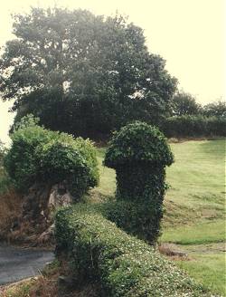 That mere entrances to fields and small laneways should have such massive pillars is another Jungian quirk in the psychopathology of Northern Ireland - for these cement-rendered or whitewashed gateposts, up to a yard in diameter with glandiform, conical caps (some quite phallic) are a conflation of two Celtic - or perhaps indeed pre-Celtic - monuments: the phallic boundary marker (of which the herm is a type), and the pairs of pillar-stones which were a magical agent whereby the fertility of beasts was ensured by driving them between such - usually phalliform - stones. Pairs of pillar-stones (as opposed to the rubble-constructed Ulster gateposts) are found elsewhere in Ireland, in Britain, and, of course, in Europe.