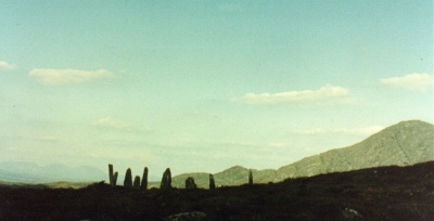 At Kealkil, as at Beaghmore, the alignment and circle are also accompanied by a circular low heap of stones. Circles of tall stones, being sufficiently prominent, do not have associated alignments. But sometimes, as at Ardgroom Outward, they may have one or more outlier.